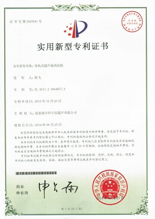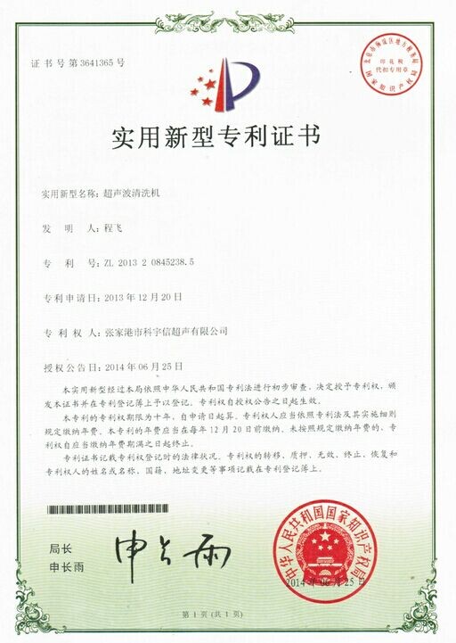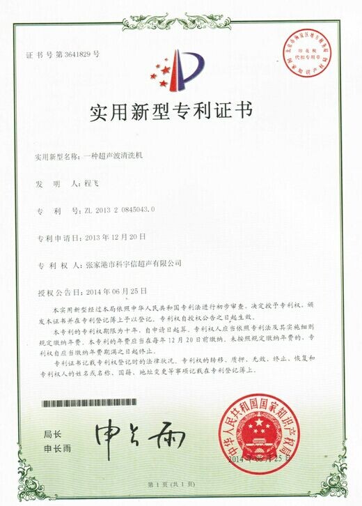 公司申請超聲波清洗機三個新型專利產品